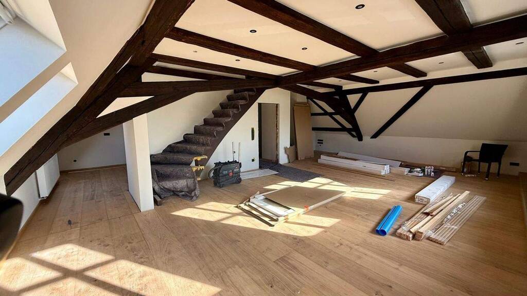 Die toll-geschnittene Wohnung befindet sich im 2. Obergesschoss und Spitzboden eines denkmalgeschützten Wohn- und Geschäftshaus direkt am Allersberger Marktplatz. Dieses Objekt ist definitiv nichts von der Stange und zählt zu den älteren Häusern Allersbergs.