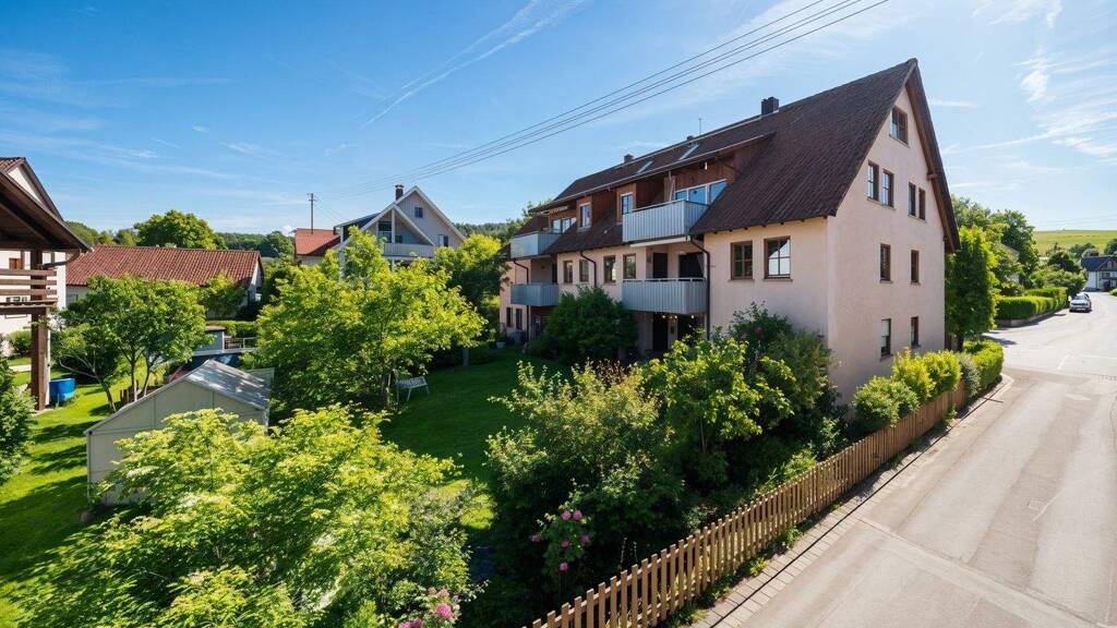 Bei der zum Verkauf angebotenen Immobilie handelt es sich um eine große Maisonettewohnung mit 4,5 Zimmern und einer Wohnfläche von ca. 140 m². Sie befindet sich im ersten und zweiten Dachgeschoss eines 1991 gebauten Mehrfamilienhauses mit insgesamt sechs Wohneinheiten. Die bereits bezugsfreie Wohnung verfügt in der unteren Etage über ein geräumiges Wohnzimmer mit Zugang zum Balkon, über zwei Schlafzimmer, eine Küche, ein Bad und Gäste-WC. In der oberen Etage befindet sich ein großer Wohnraum, bzw. Schlafzimmer und ein weiteres Badezimmer. Die Maisonette befindet sich in einem gepflegten Zustand. 2023 erhielt sie neue Laminatböden und einen frischen Wandanstrich. Davor wurden bereits die Dachfenster erneuert, 2024 dann die gesamte Glasfront des Balkons, die nun mit 3-fach verglasten Fenstern und neuen Rollladen ausgestattet ist. Perfekt geeignet ist die Immobilie für Paare und kleine Familien, die gerne ländlich leben möchten und das Wohnen auf zwei Etagen bevorzugen. Alternativ wäre auch die Nutzung als WG möglich - in der oberen Etage stehen zusätzlich Anschlüsse für eine Küche zur Verfügung, sodass hier eine separate Wohneinheit in der Wohnung eingerichtet werden könnte. Sie wird mit einer Gas-Zentralheizung geheizt und verfügt über einen Keller, eine Garage und einen Stellplatz davor.