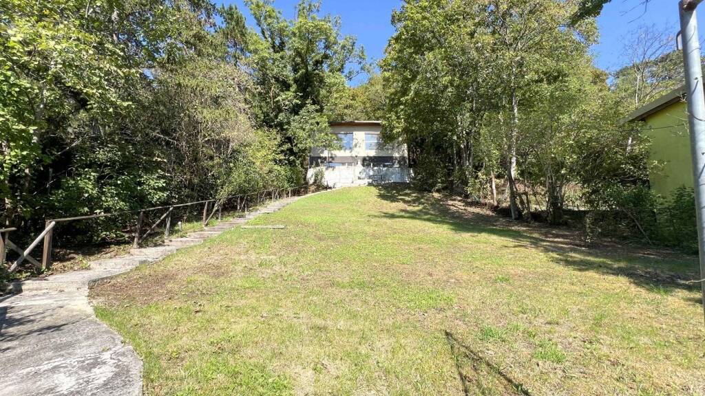 Derzeit besteht straßenseitig eine Garage. Diese könnte bei Bedarf noch vergrößert werden, damit mehrere PKWs untergebracht werden können. Über Stufen gelangen Sie dann in den moderat ansteigenden Teil des Grundstücks. Da dieses von der Länge großzügig bemessen ist, besteht die Möglichkeit im unteren oder oberen Teil das Haus zu errichten.