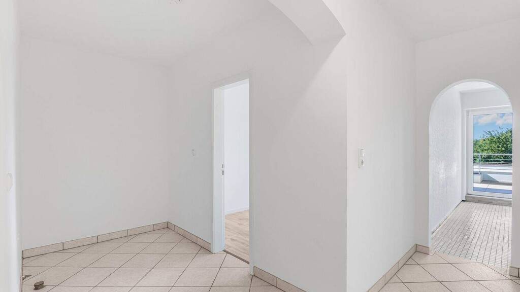 Die angebotene Wohnung erstreckt sich über ca. 72 m² Wohnfläche zzgl. eines ca. 22 m² großen Balkons und befindet sich im 1. Obergeschoss. Sie zeichnet sich durch eine offene, lichtdurchflutete Atmosphäre aus, die bereits beim Betreten spürbar ist. Diese wird geprägt von den zahlreichen Fenstern und dem großen Glaselement, das zum Wohnzimmer hin ausgerichtet ist. Der Flur ist großzügig geschnitten. Rechter Hand befindet sich ein kleiner Abstellraum, der sich als Garderobe oder Abstellfläche für Staubsauger und Putzmittel eignet. Links davon liegen das zeitlose Wannenbad und das gut geschnittene Schlafzimmer mit Blick ins Grüne. Im Laufe der Zeit wurde die Lage des Badezimmers verändert, wodurch vor dem Schlafzimmer eine große Nische entstand. Hier könnte man beispielsweise einen Arbeitsplatz für das Homeoffice einrichten oder ein separates Gäste-WC einbauen. Die Küche ist zweckmäßig gestaltet und verfügt über ausreichend Stau- und Arbeitsfläche. Im Zuge einer etwaigen Küchenerneuerung wäre es jedoch auch denkbar, einen offenen Wohn-/Essbereich mit Wohnküche zu schaffen.