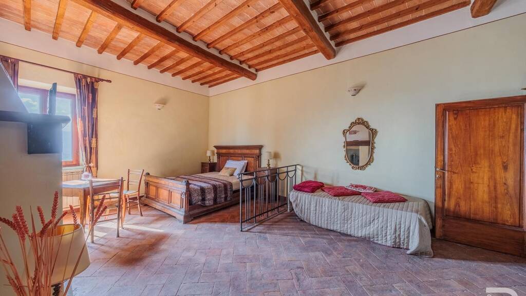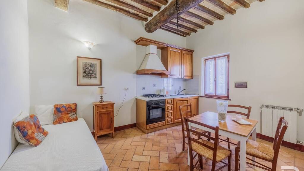 Eines der vielen Highlights dieser einzigartigen Wohnung ist die Aussicht. Von den Fenstern aus können Sie die ungestörte, atemberaubende Landschaft des Val d'Orcia mit seinen sanften, grünen Hügeln und den weitläufigen Feldern bewundern. Jeder Blick aus dem Fenster lässt Sie Teil dieser malerischen Kulisse werden und verführt zu Träumereien und Entspannung.