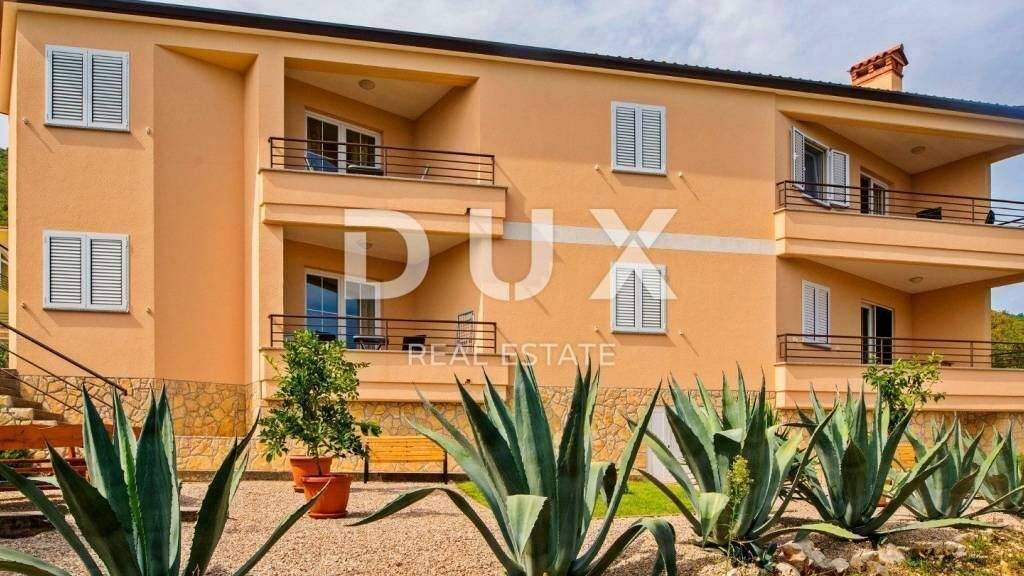 An der südöstlichen Küste Istriens, dort, wo grüne Hügel auf das Meer treffen, wo Natur und Erbe zusammenkommen, liegen nur fünf Kilometer voneinander entfernt zwei Städte ähnlicher Größe, aber mit unterschiedlichem, sich aber gegenseitig ergänzendem Charakter Labin und Rabac. Rabac wird wegen seiner weißen Kiesstrände, der üppigen mediterranen Vegetation und dem kristallklaren Meer auch die Perle der Kvarner-Bucht genannt. Einst ein kleines Fischerdorf, ist Rabac heute ein attraktives Touristenziel, das in einem Netz farbenfroher Straßen eine Fülle kultureller Veranstaltungen verbirgt. Die grüne Umgebung von Rabac und das malerische Hinterland laden das ganze Jahr über zu Abenteuern, Forschung und Erholung ein. Unweit von Rabac und Labin in einer kleinen Siedlung am Meer steht ein Apartmenthaus mit Meerblick zum Verkauf. Diese Immobilie ist eine derjenigen, die ihrem zukünftigen Besitzer Komfort bieten kann, angefangen bei der Oberfläche selbst über die hochwertigen Materialien, die für den Bau, die Dekoration und die Einrichtung verwendet wurden, bis hin zur Nähe zu Stränden und dem Meer. Das Haus ist in ein Erdgeschoss und ein Obergeschoss aufgeteilt und besteht aus vier Wohneinheiten. Das Erdgeschoss besteht aus zwei Wohneinheiten von jeweils 48 m. Jede Wohneinheit besteht aus einem Schlafzimmer, einem Badezimmer und einem Wohnbereich, der ein Wohnzimmer, ein Esszimmer und eine Küche mit Zugang zu einer Terrasse mit Blick auf das Meer vereint. Die Etage besteht aus zwei Wohneinheiten von jeweils 54 m. Jede Wohneinheit besteht aus zwei Schlafzimmern, einem Badezimmer und einem Wohnbereich, der Wohnzimmer, Esszimmer und Küche mit Zugang zur Terrasse mit freiem Blick auf das Meer, Cres und die Umgebung vereint. Der Hof ist eingezäunt und im mediterranen Stil dekoriert. Die Fläche des Gartens umfasst ein separates Katastergrundstück von 402 m mit Zufahrtsstraße, das vollständig im Baugebiet liegt. Die Immobilie ist komplett möbliert und ausgestattet und wird als solche verkauft. Diese Immobilie in der Nähe des Meeres und der Strände ist eine ideale Investitionsmöglichkeit in einem bereits etablierten, erfolgreichen Feriendomizil.