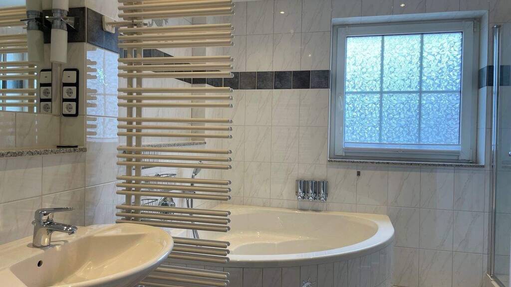 Im Erdgeschoß erreichen Sie über einen großzügigen und repräsentativen Eingangsbereich einen 28 m² großen Schlafraum mit Ankleidezimmer und Zugang zum Bad mit Wohlfühl-Wanne (Eckbadewanne), Dusche und WC. Das Bad mit Fenster ist selbstverständlich ausgestattet mit hochwertiger Sanitäreinrichtung und ansprechenden Armaturen.