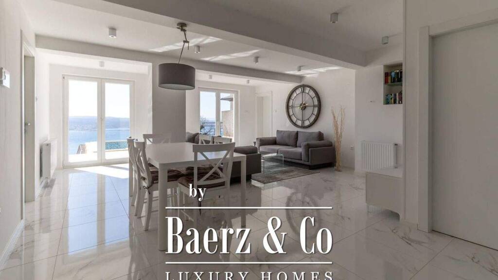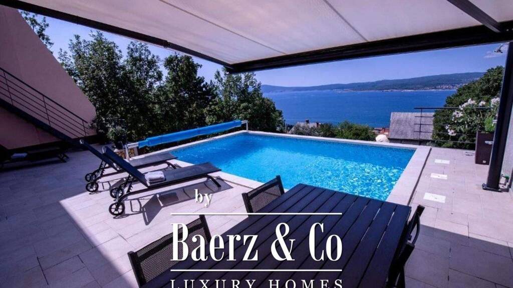 pin a peaceful location in crikvenica, just about ten minutes from the town center, this spacious house with a total area of 352 m² is situated. the property extends over the ground floor and two upper floors and is surrounded by a landscaped yard featuring a heated swimming pool, garden, and as many as seven parking spaces, including one garage space. thanks to its layout and equipment, it is ideal both for comfortable family living and as an investment for tourist rentals./ppthe ground floor offers a functional living area comprising two bedrooms, a bathroom, an additional guest toilet, hallway, boiler room, and laundry room. the central part features an open-concept living room connected to the kitchen and dining area, with direct access to a spacious terrace with a heated swimming pool. next to the pool, there is a landscaped garden with a small outdoor kitchen - a perfect setting for relaxation and social gatherings while enjoying a stunning panoramic sea view./ppthe first floor provides an additional residential unit consisting of a living room connected to the kitchen and dining area, two bedrooms, a bathroom, an entrance hall, a storage room, and a balcony with a beautiful view. prefabricated stairs allow direct access to the terrace and garden, further enhancing the functionality of the space./ppon the second floor, there is a studio apartment and an additional apartment. both units feature private balconies with open sea views. the larger apartment consists of a living room with a kitchen and dining area, two bedrooms, a bathroom, and a hallway./ppthe house is sold fully furnished and ready for immediate occupancy. it is equipped with air conditioning units, a solar water heating system, and central heating powered by a heat pump, ensuring year-round comfort. the property also includes a 20 m² garage./ppthanks to its well-designed layout, multiple separate residential units, quality equipment, and attractive location with panoramic sea views, this property represents an excellent opportunity - whether you are looking for a peaceful coastal home or a secure investment on the adriatic coast./ppfor more detailed information, feel free to contact us./p