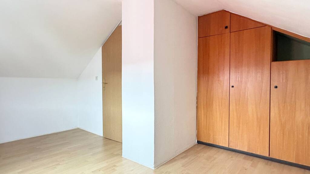 Eine Etage höher befindet sich im Dachgeschoss ein zusätzlich ausgebautes Zimmer mit praktischen Stauraumkammern in den Dachschrägen.