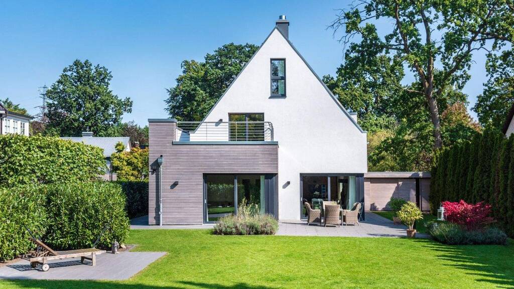 Zur Inspiration einer möglichen Bebauung wurde gemeinsam mit dem renommierten Hamburger Bauträger Breyer & Seck ein beispielhaftes Hauskonzept entwickelt. Die Visualisierung zeigt den Haustyp "Casa Lignea" - ein großzügiges Einfamilienhaus im skandinavisch inspirierten Stil mit klassischem Satteldach, klarer Architektur sowie einer eleganten Kombination aus heller Putzfassade und natürlichen Holzverkleidungen.