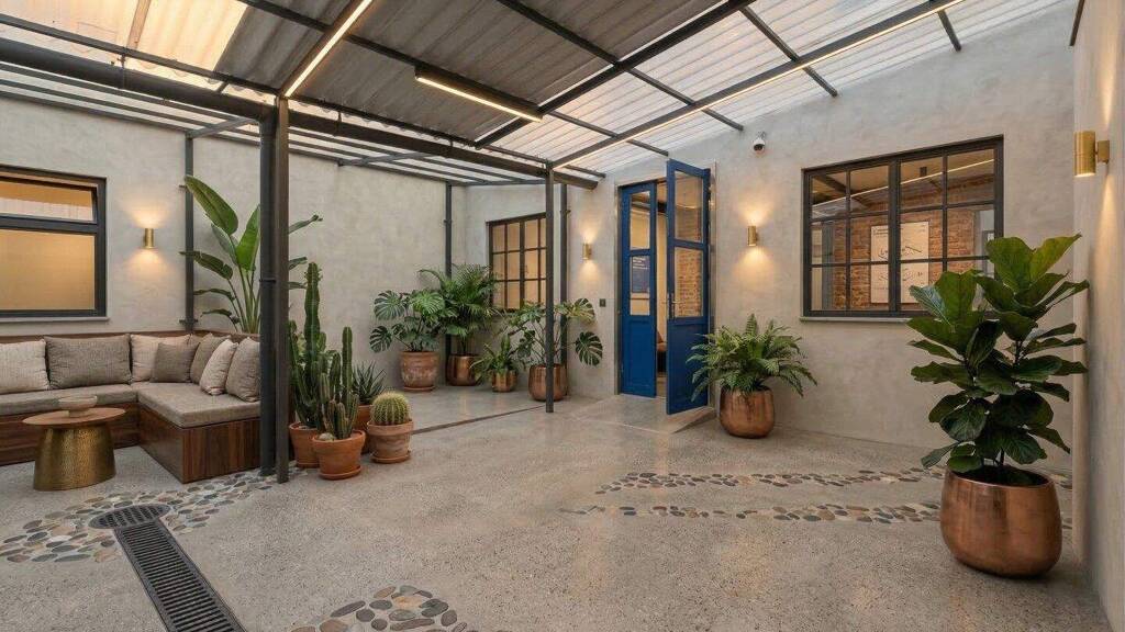 Das Loft im Innenhof erstreckt sich über das Erdgeschoss und das erste Obergeschoss und bietet eine Gesamtfläche von ca. 143,32 m² im Erdgeschoss und 72,24 m² im ersten Obergeschoss. Zusätzlich steht eine großzügige Terrasse von 38,30 m² zur Verfügung. Es eignet sich hervorragend für verschiedene Nutzungskonzepte:
