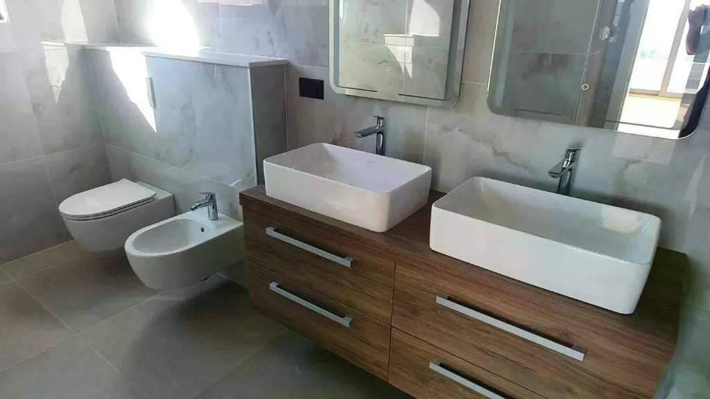 Im Obergeschoss befinden sich vier geräumige Schlafzimmer mit jeweils eigenem Vorraum und hochwertig ausgestatteten Bädern. Alle Zimmer verfügen über King-Size-Betten, SMART-TVs, große Schränke und Zugang zu privaten Terrassen mit atemberaubendem Blick auf das Meer oder die umliegende Natur. Ein zusätzlicher Raum kann als Sauna, Wellnessbereich oder Home-Office genutzt werden.