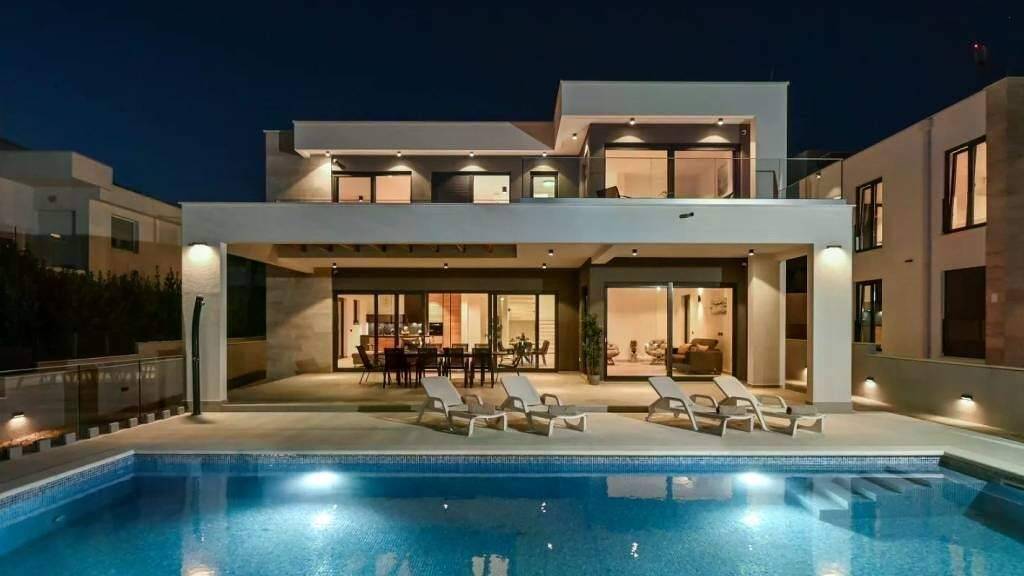Parthenon Immobilien präsentiert mit Stolz diese beeindruckende Design-Villa auf höchstem Niveau, gelegen in einer der begehrtesten Lagen von Novalja, nur 250 Meter vom Meer und dem berühmten Sandstrand Babe entfernt. Voll ausgestattet und stilvoll möbliert bietet diese Immobilie sofortiges Einziehen und ein Leben voller Luxus.