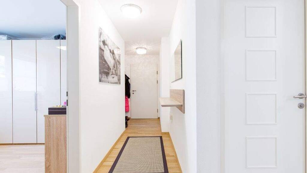 Das Raumangebot wird durch drei weitere Zimmer ergänzt, die flexibel als Schlafzimmer, Kinderzimmer, Homeoffice oder Gästezimmer genutzt werden können. Eine stilvolle Wellnessoase mit Badewanne, Dusche und Doppelwaschbecken sowie ein separates WC runden den Wohnkomfort ab. Ein einladender Eingangsbereich und ein praktischer Abstellraum mit Fenster sorgen für zusätzlichen Stauraum.