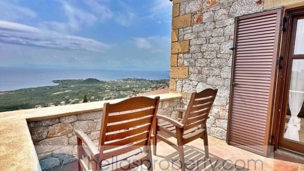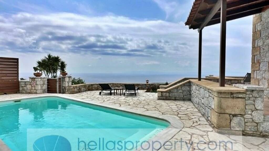 Gepflegte Natursteinvilla mit ca. 97 m² an Wohnfläche auf einem gemeinsamen Grundstück mit einer Gesamtfläche von 1.900 m² mit einer großartigen Aussicht vom Ort aus. Am Eingang des mit einer Steinmauer umzäunten Bereichs wurde ein 2,5 x 5,5 Meter großer Swimmingpool platziert.