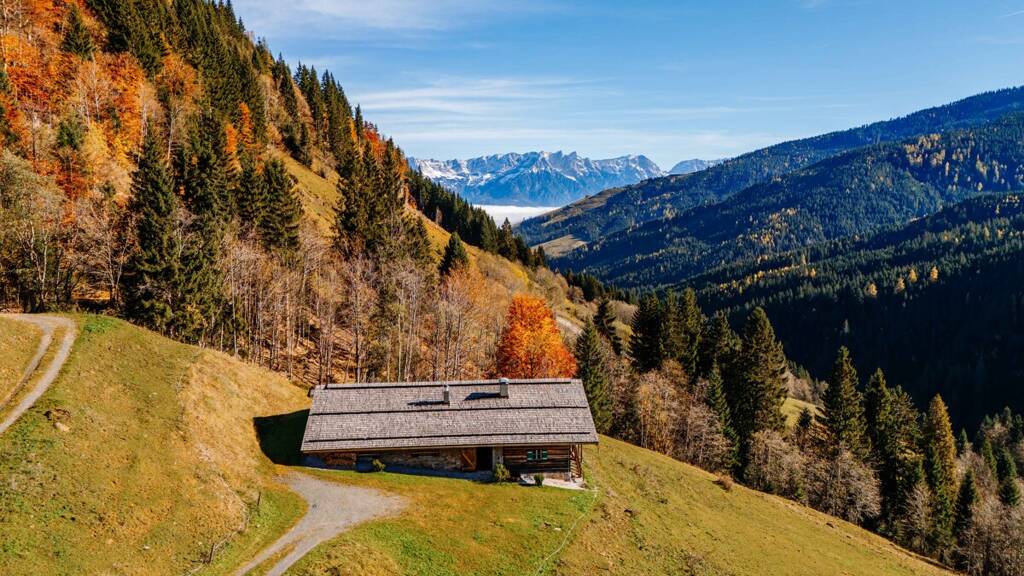 Die Almhütte liegt im idyllischen Schwarzleotal in Leogang, einem der schönsten Seitentäler des Pinzgaus. Eingebettet zwischen saftigen Almwiesen, Wäldern und den imposanten Leoganger Steinbergen, bietet dieser Ort das, was man heute nur noch selten findet: echte Ruhe und Natur pur. Im Sommer führt ein Güterweg direkt bis zur Hütte - ideal, um bequem anzureisen oder Besorgungen im Tal zu erledigen. Nur wenige Minuten entfernt liegen das Ortszentrum von Leogang mit Einkaufsmöglichkeiten, Restaurants und gemütlichen Gasthäusern sowie die Bergbahnen, die im Sommer wie im Winter grenzenlose Freizeitmöglichkeiten eröffnen. Im Winter zeigt sich das Schwarzleotal von seiner stillen Seite: Wenn die Landschaft unter einer glitzernden Schneedecke ruht, erreicht man die Hütte nach einer etwa 30-minütigen Skitour oder Winterwanderung - ein ganz besonderes Erlebnis für Naturliebhaber. Die bekannte Skiregion Saalbach-Hinterglemm-Leogang-Fieberbrunn ist nur eine kurze Autofahrt entfernt und bietet Pistenspaß auf höchstem Niveau. Ob als ruhiger Rückzugsort für den Alltag oder als Ausgangspunkt für sportliche Abenteuer - die Lage dieser Almhütte verbindet das Beste aus zwei Welten: unberührte Natur und die Nähe zu einem der beliebtesten Urlaubsorte im Salzburger Land.