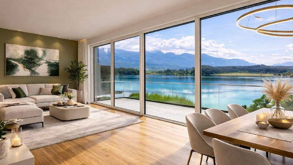 Von Ihrem einmaligen Penthouse, überblicken Sie nicht nur den See, sondern genießen Sie auch den Fernblick auf das Landschaftsschutzgebiet und die fernen Karawanken.