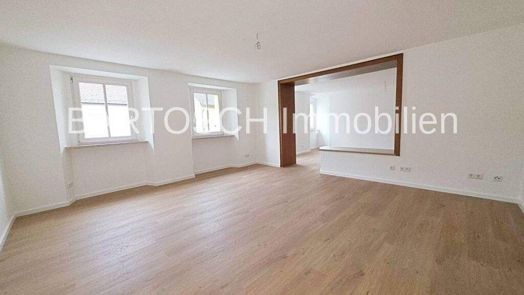 Schon beim Eintreten spürt man das einladende Raumgefühl: Ein ca. 10 m² großer Garderobenbereich bietet Platz zum Ankommen und Durchatmen. Von hier aus öffnet sich die Wohnung in ihren wohnlichen Kern. Zur linken Seite liegen das helle Wohnzimmer und das angrenzende Esszimmer - offen gestaltet und dennoch sanft voneinander getrennt durch einen stilvollen Durchgang mit Sims. Die massive Steinplatte auf dem Sims setzt einen edlen Akzent und verbindet beide Räume zu einem harmonischen Wohnbereich, der zu geselligen Abenden ebenso einlädt wie zu ruhigen Stunden.