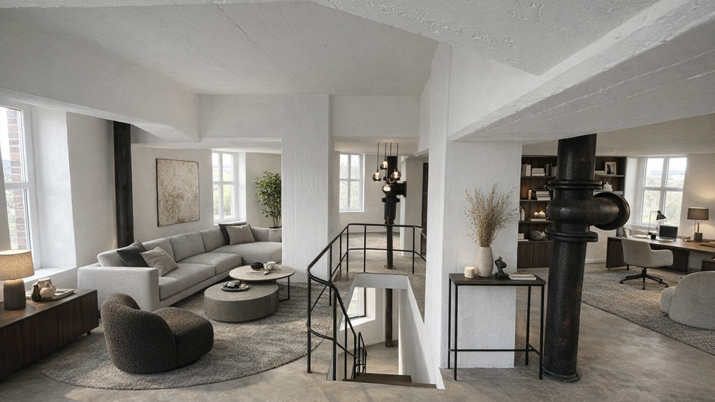 - Ebene 4 und 5: Freizeit- und Aufenthaltsraum im ehemaligen Wasserbehälter