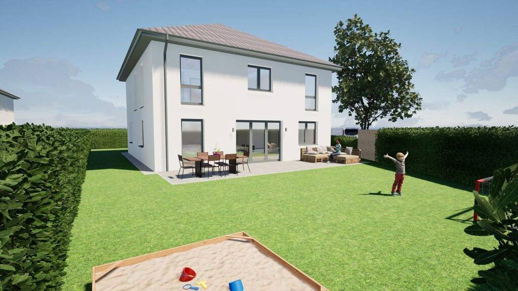 Wir bauen auf dem Grundstück ein modernes Einfamilienhaus.