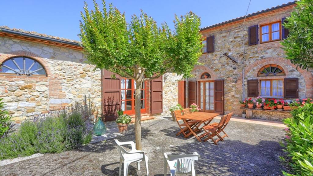 Dieses schöne Bauernhaus aus Stein mit einer Gesamtfläche von 640 m2 wurde im toskanischen Stil komplett renoviert.