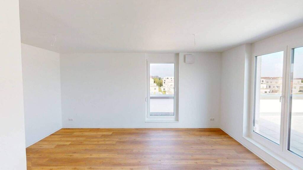 Kochen, Relaxen und Beisammensein können Sie im großen Wohn- und Essbereich inklusive platingrauer Einbauküche, die mit allen notwendigen Elektronikgeräten ausgestattet ist. Große, bodentiefe Fenster schaffen lichtdurchflutete Wohnräume zum Relaxen, Kochen und zur Ruhe kommen. Vom Wohnzimmer aus haben Sie auch Zugang zur exklusiven Dachterrasse. Hier haben Sie einen hervorragenden Blick über das Turley Areal. Einmalig!