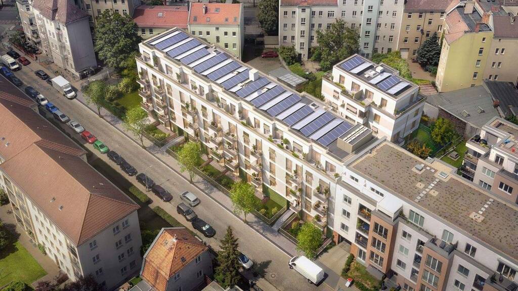 Nachhaltigkeit steht im Mittelpunkt des Projekts am Berkenbrücker Steig. Die Flachdächer des Vorderhauses und des Gartenhauses sind mit Retentionsdächern und extensiver Dachbegrünung ausgestattet. Photovoltaikanlagen auf den Flachdächern liefern nachhaltige Energie.