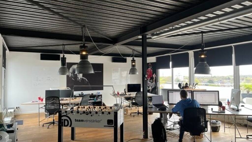 Die Agentur liegt im obersten Stockwerk und verfügt über eine große Dachterrasse, die sich um das Büro herum erstreckt. Man hat von dort einen wunderschönen Blick in Richtung Köln Zentrum und Dom. Das Büro hat eine Gesamtfläche von 120 qm plus 120 qm Dachterrasse. Es gibt eine vollausgestattete Küche, die gemeinsam genutzt werden kann. Außerdem einen Konferenzraum, der ebenfalls gemeinsam genutzt werden kann. Es ist ein WC mit Dusche vorhanden.