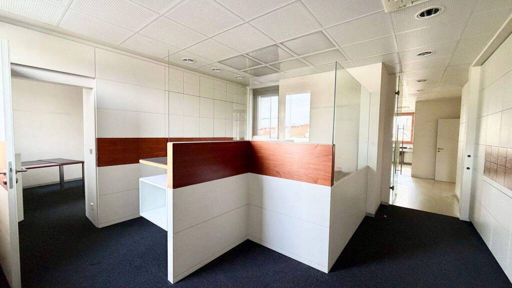Eine strukturierte LAN-Verkabelung sowie ausreichend Steckdosen sind vorhanden. Außenliegende Jalousien sind installiert. Die Decken sind abgehängt (Rasterdecke mit Mineralfaserplatten), mit modernen integrierten Deckenspots und technischer Infrastruktur. Die Deckenhöhe beträgt ca. 2,63 m.
