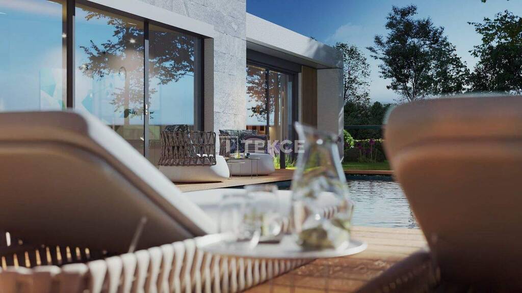 Bei der Innenausstattung kommen durchgehend hochwertige Materialien zum Einsatz. Zur Standardausstattung gehören Schwenktüren aus Stahl, maßgefertigte Küchenschränke, Einbaugeräte, Laminat- und Keramikböden, moderne Duschkabinen, Fenster mit Aluminiumrahmen, intelligente Haussteuerung und eine zentrale Satellitenanlage. Zusammen schaffen diese Elemente ein luxuriöses und praktisches Wohnumfeld.