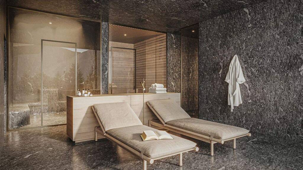 EINRICHTUNG & AUSSTATTUNG Die Einrichtung spiegelt einen modernen, zeitgenössischen Lebensstil wider. Stein und Holz aus der Umgebung, kombiniert mit modernster Technologie, sorgen für maximalen Komfort und ein großzügiges Raumgefühl. - offener Wohnbereich - großzügige Terrassen und Balkone - höchste Privatsphäre - Outdoor-Pool - Outdoor-Küche - Wellnessbereich mit Sauna, Dampfbad & Fitnessarea