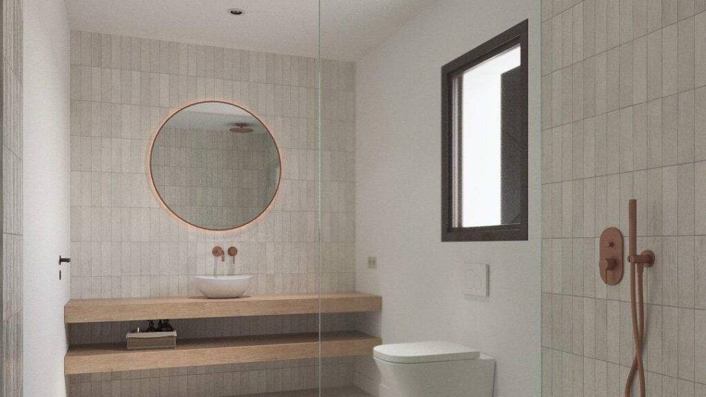 Das Projekt sieht eine Villa vor, die über zwei Etagen realisiert werden soll. Im Erdgeschoss ist ein geräumiges Wohn-Esszimmer mit einer offenen Küche mit Kochinsel geplant, ergänzt durch eine Speisekammer, einen Abstellraum und eine Gästetoilette. Das Obergeschoss ist mit drei komfortablen Schlafzimmern und zwei stilvoll gestalteten Badezimmern ausgestattet, die Funktionalität und Ästhetik vereinen, darunter ein Badezimmer en suite. Die Aufteilung des Projekts wurde sorgfältig ausgearbeitet, um eine optimale Raumnutzung zu gewährleisten und einen natürlichen Fluss zwischen den verschiedenen Wohnbereichen zu schaffen.