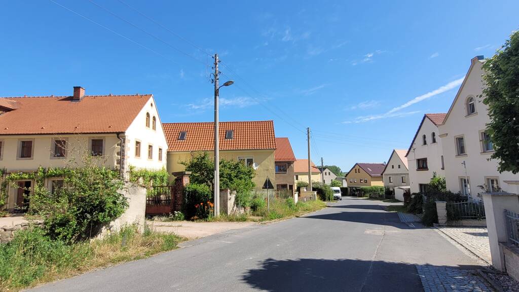 Das MFH steht etwas eingerückt von der Straße im Grünen, unweit des Dorfplatzes mit der Dorflinde im Mittelpunkt eines neugestalteten Spielplatzes. Gegenüber liegt der übliche Ententeich mit den anliegenden hübsch sanierten Dreiseithöfen, dessen Gesamtensemble den Charme des Ortes ausmacht. Die ruhige Beschaulichkeit, die über allem liegt, rührt auf der einen Seite von der Rückseite des Spaargebirges mit der Bosel und auf der anderen Seite von der Weite in Richtung Nassau her mit Landwirtschaftsplantagen und Pferdekoppeln. Arbeitgeber wie Ämter des Landkreis Meißen, Duravit Sanitärporzellan Meißen GmbH, die Privatbrauerei Schwerter Meißen u. a. sind nicht weit entfernt. Alle Einrichtungen des täglichen Bedarfs sind mit dem Auto in wenigen Minuten erreichbar. Eine Bushaltestelle Richtung Stadt befindet sich in der Nähe gegenüber vom Landkreisamt auf der Heinrich-Heine-Straße. Die Verbindung von ruhigem, erholsamem Landleben mit Kunst, Kultur und Schönheit der historischen Touristenstadt Meißen ist hier gegeben.