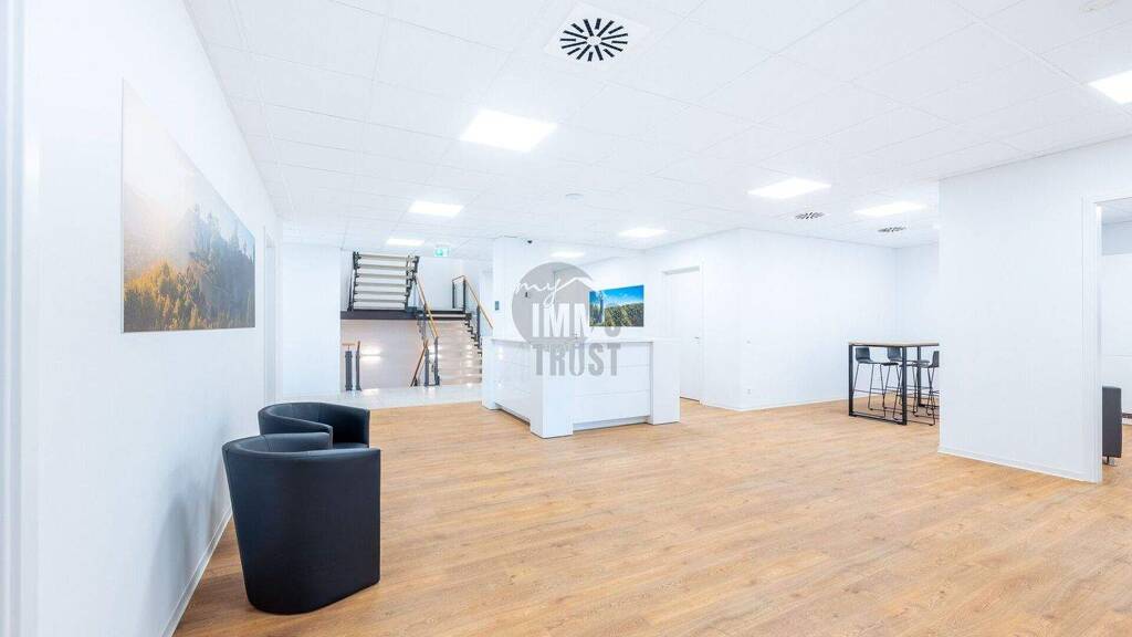 Gemeinschaftsbereiche wie die voll ausgestattete Einbauküche, ein Besprechungsraum, ein Empfangsbereich mit gemütlichen Sitzgruppen, Garderobe und WC's stehen Ihnen zur gemeinsamen Nutzung zur Verfügung. Ein gemeinschaftlicher Drucker deckt zudem alle Ihre Druckbedürfnisse ab, sodass Sie sich voll und ganz auf Ihr Geschäft konzentrieren können.