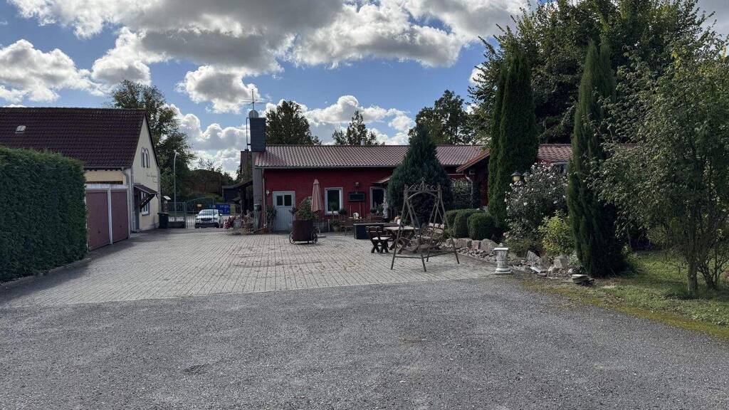 Das Grundstück besticht durch seinen charmanten Außenbereich mit überdachtem Biergarten für rund 50 Gäste, viel Grünfläche zum Entspannen sowie ausreichenden Parkmöglichkeiten (mindestens 15 Stellplätze) und drei Garagen.