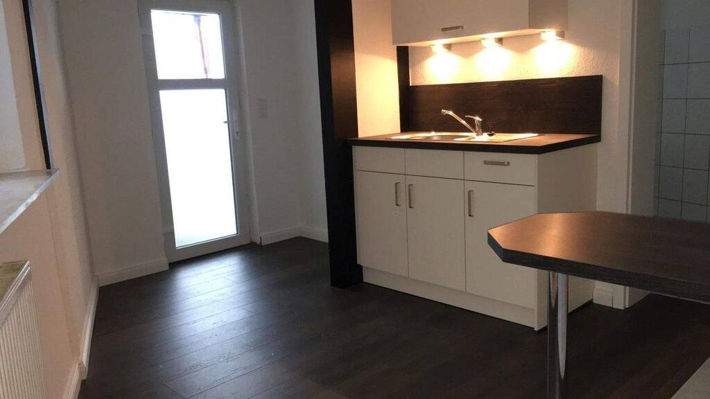 Bemerkungen: Die Wohnung ist modern ausgestattet. Eine gediegene Einbauküche mit integriertem Sitzplatz, Ceranfeld, Kopffrei Dunstabzugshaube und Kühlschrank, wurde kombiniert mit dunklem Laminat in Dielenoptik. Der Schlafzimmer ist innen liegend und interessant mit einem Stallfenster ausgestattet. Das Badezimmer ist in hellen Farben gehalten und mit Dusche und Waschmaschinenanschluss ausgestattet. Der Grundriss enthält Durchgangszimmer, daher ist die Wohnung nicht für eine WG geeignet. Das Haus wurde 2017 mit einer neuen Gaszentralheizung ausgestattet, die nach dem modernem Energiespar-Standard ausgelegt wurde
