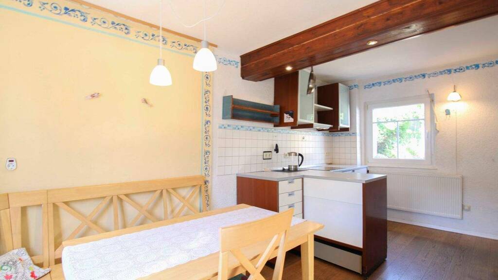 Aufgeteilt wird die Wohnfläche auf 2 Etagen und 4 Zimmer, wobei die Raumaufteilung neben den gemeinsamen Räumen für gemütliche Rückzugsmöglichkeiten sorgt. Ob Büro oder Kinderzimmer - genügend Platz ist für beides vorhanden. Als familienfreundlich erweist sich ein Badezimmer mit Dusche und Badewanne. Komfort im Alltag entsteht durch eine gute Ausstattung der Immobilie, die u.a. einem Laminatboden sowie einem Eichenboden, eine Einbauküche und eines Pavillons umfasst.