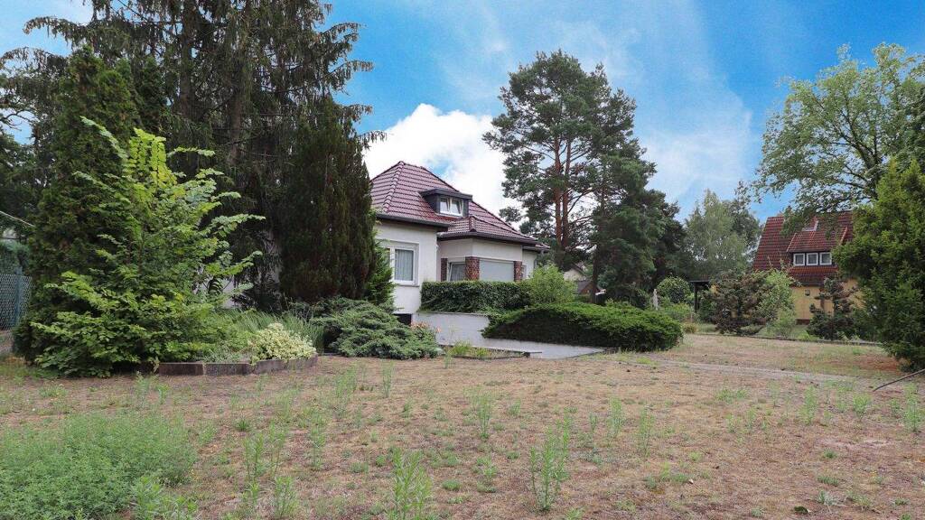 Nur eine knappe halbe Autostunde vom Berliner Zentrum entfernt, wurde 1935 dieses, in einer ruhigen Seitenstraße gelegene, große, sehr gut ausgestattete Haus errichtet und im Laufe der Jahre immer modernisiert. Das Erdgeschoß und ein Zimmer im Dachgeschoß werden im Augenblick als ein zusammenhängender Wohnbereich genutzt. Das Dachgeschoß ließe sich aber noch umfangreich ausbauen. Das Haus ist komplett unterkellert, der Keller ist geräumig trocken. Im hinteren Grundstücksbereich wurde ein umfangreiches, massives Nebengelass mit einer Grundfläche von ca.60 Quadratmeter errichtet. Das große Vorderhaus hat einen Tiefgarage. Zwischen 2005-2016 wurden Fenster, Dach, Fassade, Heizung und alle Fussböden saniert. Darüber hinaus wurde dasBad und die Küche saniert, das Zimmer im Dachgeschoß schallgedämmt und der Eingangsbereichgepflastert. Das Grundstück ist voll erschlossen. Strom, Gas, Wasser, Abwasser, Telefon und DSL liegen an. Die Immobilie ist aktuell vermietet. Bei gewünschter Eigennutzung muss vom Käufer auf Eigenbedarf gekündigt werden. Für die Immobilie liegt ein Energieausweis (Verbrauchsausweis) vor. Der Endenergiebedarf ist 201,1 kWh/(m2·a)