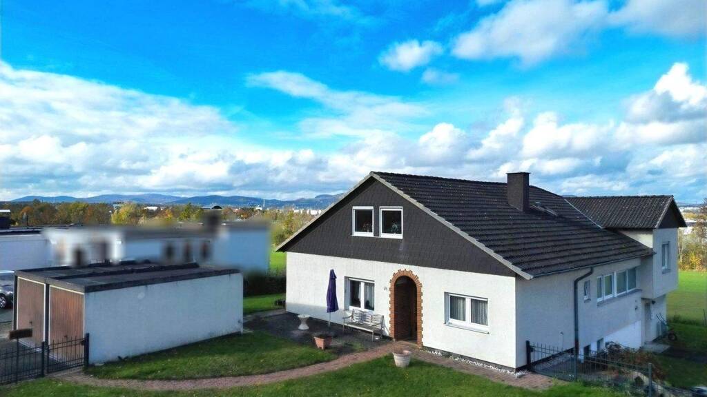 Ein großer, pflegeleichter Vorgarten zur Straßenseite schafft eine einladende Optik und bietet zugleich Privatsphäre. Die Immobilie befindet sich in beliebter Lage von Lohfelden, unweit der Kasseler Stadtgrenze - mit Blick über die Stadt bis hin zum Herkules.