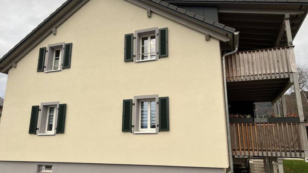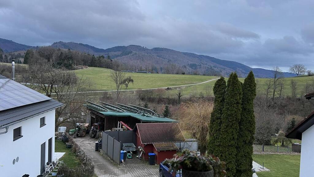 Diese 3 1/2 Zimmer-Wohnung mit ca. 111 qm überzeugt mit ihrer Großzügigkeit der Raumaufteilung. Moderne Farben und Materialien vermitteln ein angenehmes Wohnklima. Zu dieser Etage führt ein Zugang von außen über eine große, gerade verlaufende Treppe auf den großen Balkon mit sensationeller Aussicht auf die umliegenden Felder und den Hotzenwald. Von hier aus gelangen Sie direkt in die Wohnung.