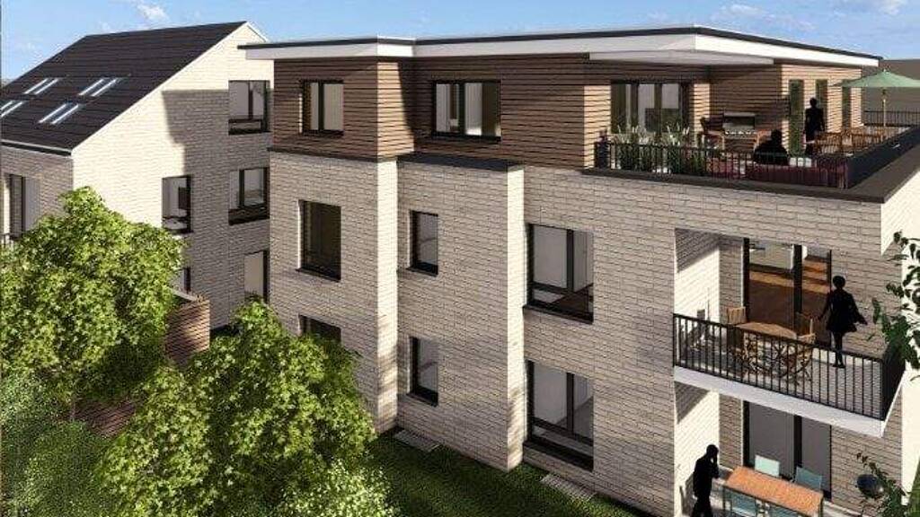 zentrale Lage in Rietberg-Mastholte Neubau-Maisonettewohnung im OG/DG Wohnensemble mit einem 5- und einem 3-Parteienhaus ca. 87 m² Wohnfläche mit 4 Zimmern großzügiger Wohn-/Ess-/Kochbereich mit Balkon KfW-40-Energieeffizienzstandard, Luftwärmepumpe, Aufzug 2 Stellplätze je Wohnung