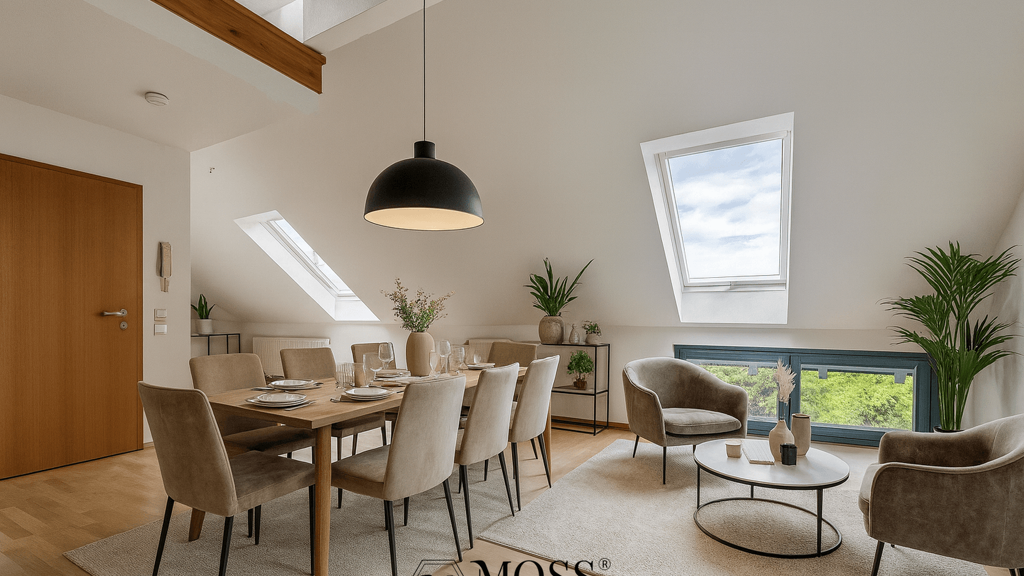 Bereits beim Betreten der Wohnung wird der besondere Charakter spürbar: großzügige Raumhöhen, ein durchdachtes Split-Level-Konzept und fließende Übergänge zwischen den Ebenen schaffen ein offenes, modernes Wohnambiente.