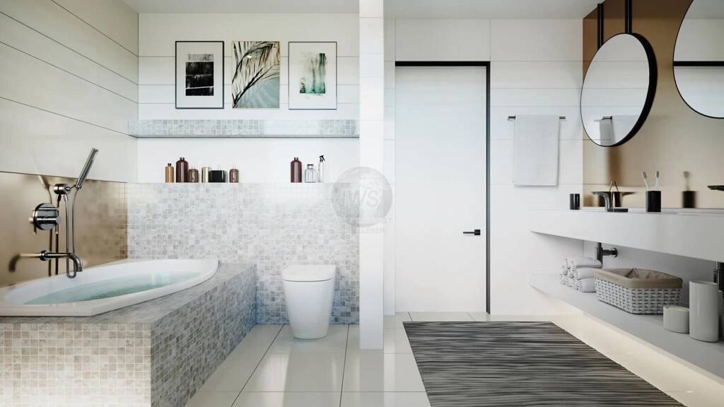 - Komplette Sanitärausstattung inklusive Sanitärobjekte, Wandhägendes WC und Waschmaschinenanschluss