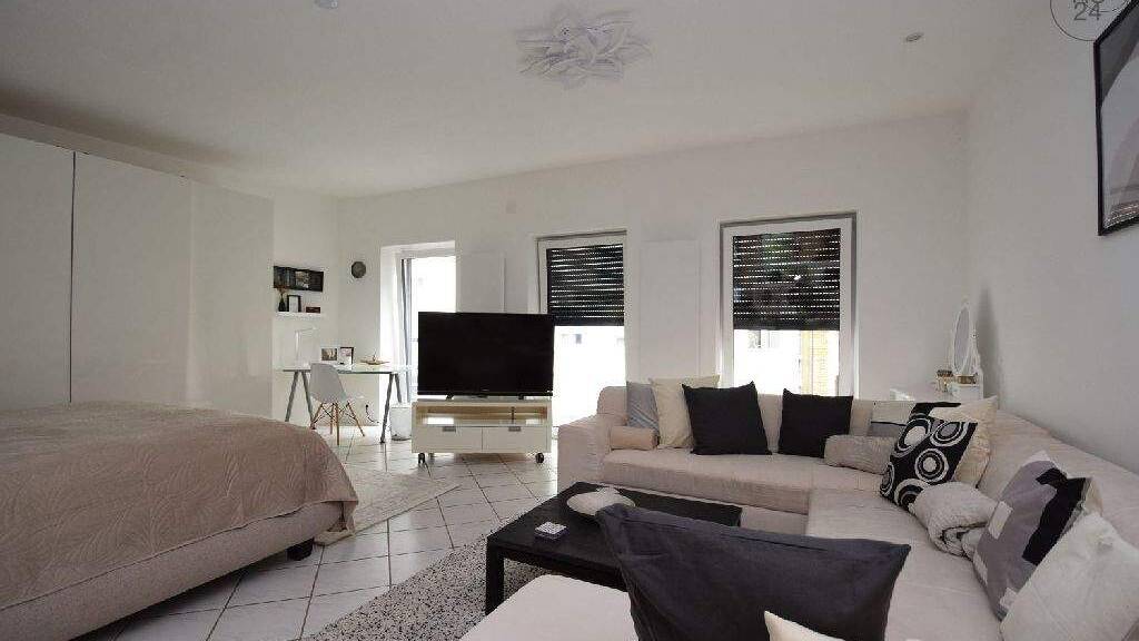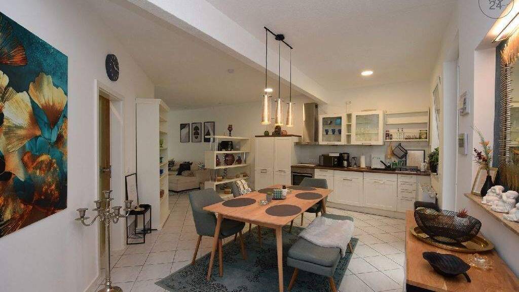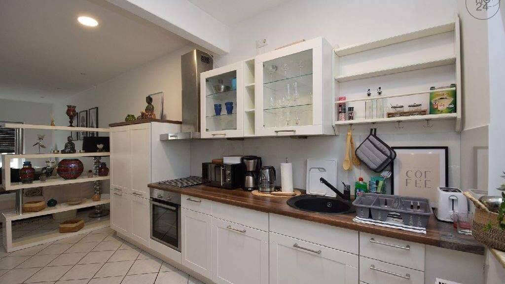 Großzügig, neu möbliert und ausgestattet- diese schicke Wohnung in Köln-Nippes bietet einer Einzelperson oder einem Paar angenehmes Wohnen im beliebtem Stadtteil Nippes. Sie befindet sich auf der 1. Etage (ohne Aufzug) eines 5-Parteienhaus. Die offene Küche, die mit Spülmaschine, Waschtrockner, Mikrowelle, Cerankochfeld mit Backofen und Dunstabzugshaube ausgestattet ist, bietet mit dem großzügigen Essbereich einen idealen Ort zum gemeinsamen Kochen und Kommunizieren. Der überdachte Balkon mit Blick in den begrünten Innenhof bietet wetterunabhängig ein schönes Plätzchen zum Chillen. Der Wohn-Schlafbereich ist mit einem großzügigen Kleiderschrank, einem hochwertigen 1,80 x 2 m Boxspringbett, einem kleinen Glasschreibtisch und einer Frisierkommode ausgestattet. Der Flatscreen auf einem Rollwagen bietet TV-Vergnügen für den Schlafbereich oder die einladende großzügige Sitzlounge. Die bodentiefen Fenster spenden dem Raum viel Licht, Rolladen schaffen Verdunkelung. Das innenliegende Bad verfügt über eine Whirlpoolwanne und ein Waschbecken mit Spiegelschrank. E-Lademöglichkeit fußläufig erreichbar