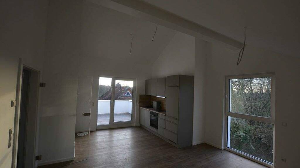 Die helle Wohnung im Dachgeschoß mit ca. 76 m² Wohnfläche, die Grundfläche ist noch größer, hat durch die Lufträume bis in den Giebel und die Schrägen ein besonders gemütliches Ambiente. Die schicke, moderne Wohnung mit Fußbodenheizung ist mit Design-Fußboden, Einbauküche sowie einem Voll-Bad mit Wanne und Dusche und einem Waschmaschinen/Trocknerbereich ausgestattet. Sie können die Sonnenstunden auf der 7,5 m² großen, privaten Dachterrasse genießen. Ein Pkw-Stellplatz kann für eine Monatsmiete von EUR 20,00 angemietet werden. Die monatliche Nebenkostenvorauszahlung beträgt inkl. Heizung und Wasser nur EUR 215,00. Telefon, Glasfaser und Strom schließt der Mieter direkt mit den Versorgern ab. Es ist eine Mietsicherheit von 3 Kaltmieten zu hinterlegen. Hier erhalten sie eine hochwertige Wohnmöglichkeit in der sie sich wohlfühlen werden. Gesucht wird hier die selbstzahlende, 1-2 Personen-Mietpartei ohne Haustiere mit einer Mindestmietzeit von 1,5 Jahren. Gerne wird auch ein längerer Zeitraum eingeräumt.