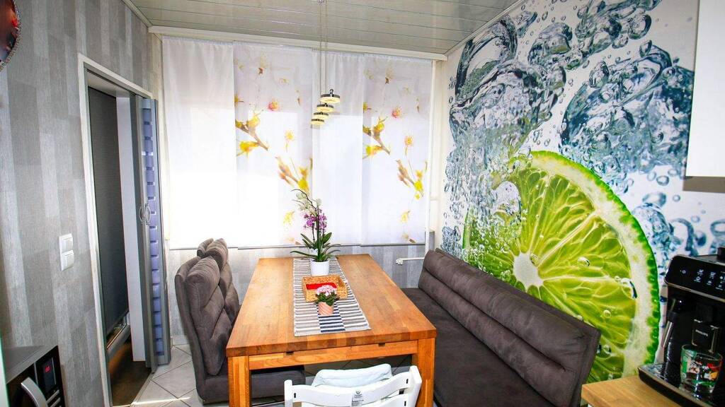 Die Küche ist mit einer modernen Einbauküche und einem praktischen Essbereich ausgestattet. Ein zusätzlicher Durchgang vom Wohnzimmer zur Küche sorgt für kurze Wege und ein offenes Wohngefühl. Das stilvolle Badezimmer verfügt über eine bodengleiche Dusche mit eleganter Glasabtrennung. Zusätzlich steht ein separates Gäste-WC mit Anschluss für die Waschmaschine zur Verfügung. Ein Abstellraum innerhalb der Wohnung bietet zusätzlichen Stauraum. In den Wohnräumen ist ein gepflegter Laminatboden verlegt, während Flur, Küche und Sanitärbereiche modern gefliest sind - so entsteht ein harmonisches Gesamtbild. Diese Wohnung eignet sich ideal für Paare, kleine Familien oder anspruchsvolle Singles, die Wert auf Komfort, moderne Ausstattung und eine attraktive Wohnlage legen.