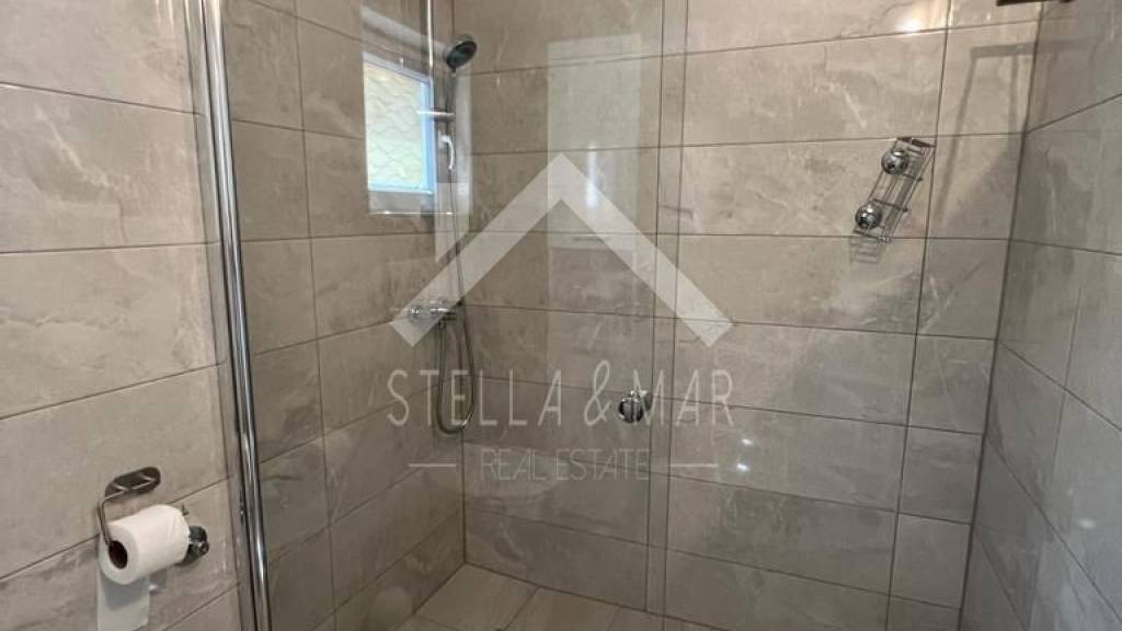 Das Haus befindet sich auf einem Grundstück von 182m2 und besteht aus einem Erdgeschoss und einem Obergeschoss. Im Erdgeschoss befindet sich eine Wohnung mit einem Wohnzimmer, einer Küche, zwei Schlafzimmern, einem Badezimmer und einer überdachten Terrasse. Die Außentreppe führt in den ersten Stock des Hauses, wo sich eine Wohnung mit identischem Grundriss befindet. Hinter dem Haus befindet sich ein Holzhaus mit zwei Schlafzimmern und einer Toilette, das als Einzimmerwohnung genutzt werden kann.