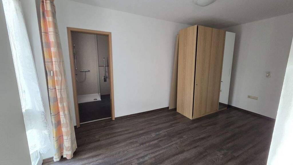 Das modern gestaltete, innliegende Bad verfügt über eine ebenerdige Dusche und WC. Der Wohnraum ist aufgeteilt in Wohn- und Schlafbereich. Die Mahlzeiten werden zusammen mit den anderen Bewohnern im Speisesaal eingenommen.