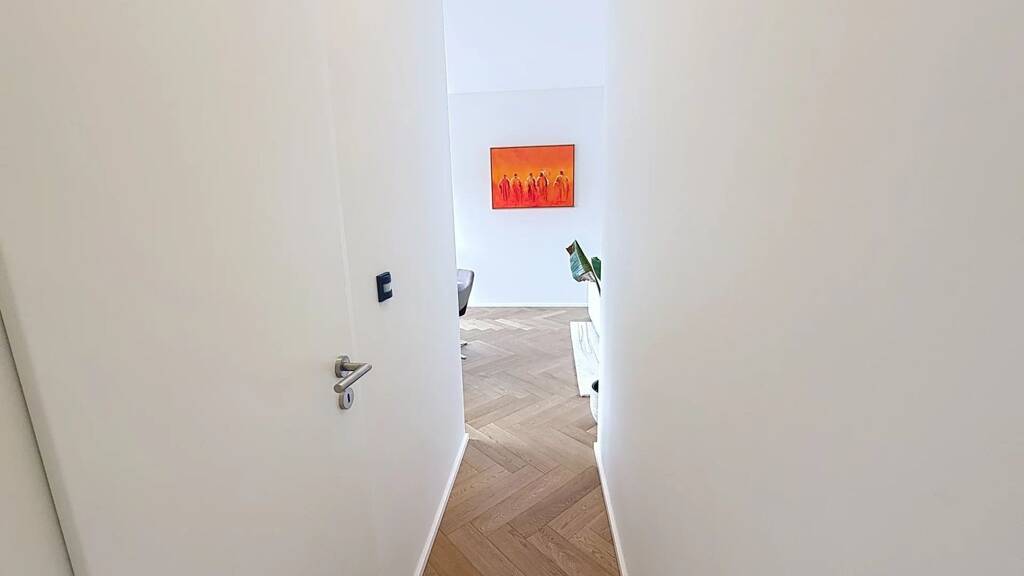 Das geschmackvoll eingerichtete Interieur vereint edle Materialien und zeitgenössisches Design: edle Parkettböden, große Fensterfronten, sorgfältige Verarbeitung und italienische Möbel von hohem Prestigewert: