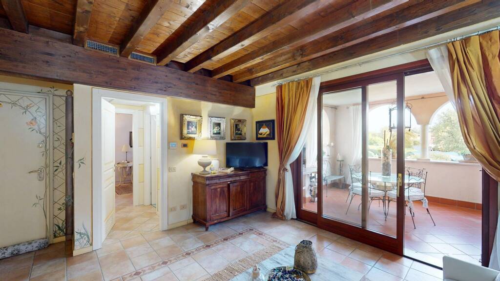 Ref: PR-024-95 Im renommierten Garda Resort Village bieten wir eine geschmackvoll eingerichtete Zweizimmerwohnung im ersten Stock für einen unvergesslichen Urlaub. Beim Betreten der Immobilie gelangt man über einen Flur in den hellen und einladenden Wohnbereich mit offener Küche, Sitzecke und einem großen Fenster, das auf eine großzügige Terrasse mit Grill führt – ideal für Mahlzeiten im Freien mit bezauberndem Blick auf die grüne Umgebung. Vom Flur gelangt man in den Schlafbereich mit einem Doppelschlafzimmer mit Kleiderschrank und französischen Fenstern sowie einem geschmackvoll eingerichteten Badezimmer mit Fenster. Die freiliegenden Balken an der Decke machen den Raum einzigartig und unverwechselbar. Ein überdachter Parkplatz ist im Preis inbegriffen. Die Wohnung ist mit einer unabhängigen Klimaanlage warm/kalt mit Wärmepumpe ausgestattet. Die Residenz liegt mitten im Grünen, nur einen Steinwurf vom See entfernt und zentral zwischen den beiden Städten Peschiera del Garda und Sirmione. Das Garda Resort verfügt über zwei große Swimmingpools in einem großen Park und ein olympisches Schwimmbecken im Sporting Club. Außerdem gibt es Tennisplätze, Fußballfelder, Beachvolleyballplätze und Bocciabahnen. Für die Kleinen gibt es einen Spielplatz und ein Babybecken. Im Resort finden wir außerdem ein Restaurant, eine Pizzeria, eine Bar und einen Minimarkt. Inklusivleistungen: • 7-Tage-Concierge mit Zugangskontrolle und Überwachung das ganze Jahr über • große Swimmingpools mit großen Solariumbereichen und Rettungsschwimmerdienst • Gartenarbeit sowohl für öffentliche Grünflächen als auch für private Gärten • Reinigungs- und verschiedene Wartungsdienste • Mietverwaltung für Eigentümer, die vermieten möchten. Diese Mitteilung dient ausschließlich zu Informations- und kommerziellen Zwecken. Die bereitgestellten Informationen haben keinen vertraglichen Wert und können sich ändern.