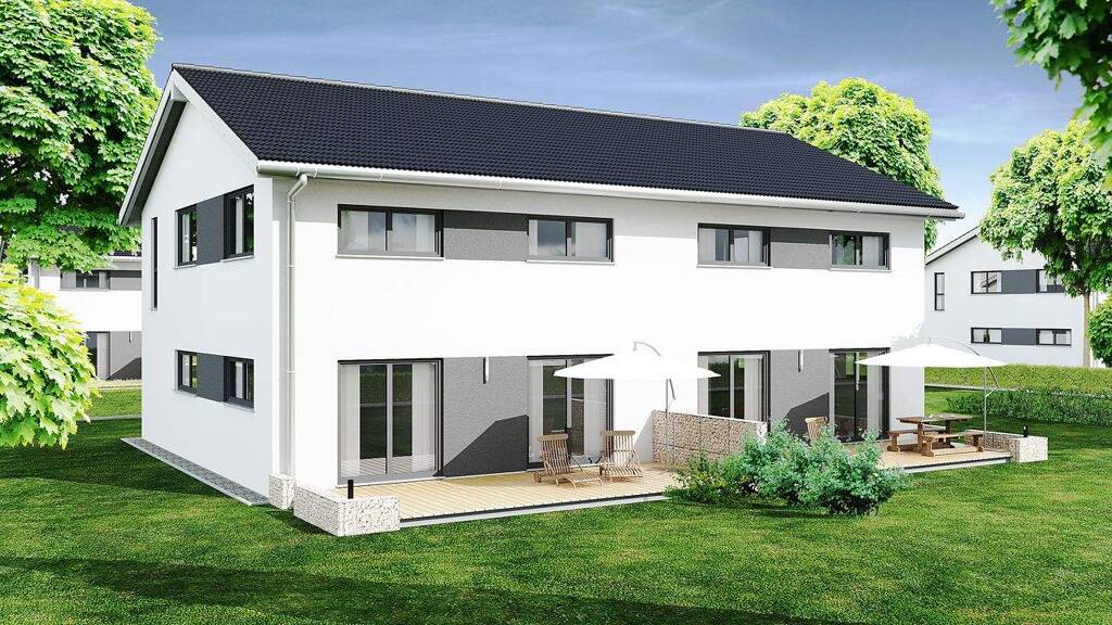 Klassiker mit Charme und klarer Linie. Wer den modernen Stil liebt, wird sich hier verlieben. Das 1½-geschossige Satteldachhaus vereint zeitlose Architektur mit moderner Wohnfunktion. Im Erdgeschoss öffnet sich der großzügige Wohn-/Essbereich mit angrenzender Küche und direktem Zugang zur Terrasse. Eine durchdachte Diele mit Garderobe, Gäste-WC und Hauswirtschaftsraum ergänzt das Ensemble. Im Obergeschoss bieten das Elternschlafzimmer mit Ankleide, zwei Kinderzimmer / Büro und ein helles Familienbad reichlich Platz für gemeinsames Leben und persönliche Rückzugsorte. Besonderheiten: • lichtdurchfluteter Wohnbereich mit bodentiefen Fenstern • optional integrierbare Eckverglasung oder Galerie • perfekt für 2-4 Personen • optional auch mit Carport oder Erker erhältlich Dachform: klassisches Satteldach Wohnfläche: ca. 120 m² Geschosse: 1½ Der Angebotspreis ist inklusive Grundstück und bezieht sich auf ein FischerHaus in der Ausbaustufe 2 = Technikfertig -Inkl. Festpreisgarantie -Inkl. Effizienzhaus 40 gemäß GEG -Inkl. individueller Grundriss – und Hausgestaltung -Inkl. Luft-Wasser-Wärmepumpe mit Fußbodenheizung -Inkl. Elektroinstallation -Inkl. Sanitärinstallation -Inkl. hochwertige Haustüre und Fenster von Kneer-Süd Fenster -Inkl. Baubegleitung Optional bieten wir dir selbstverständlich das Haus auch in der Ausbaustufe 1 = Rohbaufertig oder in der Ausbaustufe 3 = schlüsselfertig inklusiven Möbel – und Küchenkonzept an.