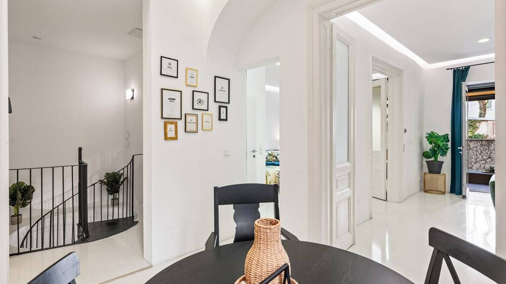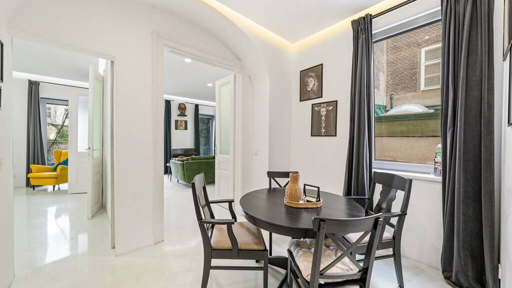 Die Wohnung befindet sich im Hochparterre des sehr ruhigen, hofseitigen Trakts des Hauses und erstreckt sich über zwei Ebenen, die auch vollständig separat voneinander genutzt werden können. Dank der durchdachten Raumaufteilung sowie zweier separater Eingänge und Stromzähler bietet sie vielfältige Nutzungsmöglichkeiten - ideal für die Kombination von Wohnen und Arbeiten unter einem Dach oder zur Trennung unterschiedlicher Bereiche (z. B. Wohnen, Büro, Wellness oder Atelier im unteren Geschoss).