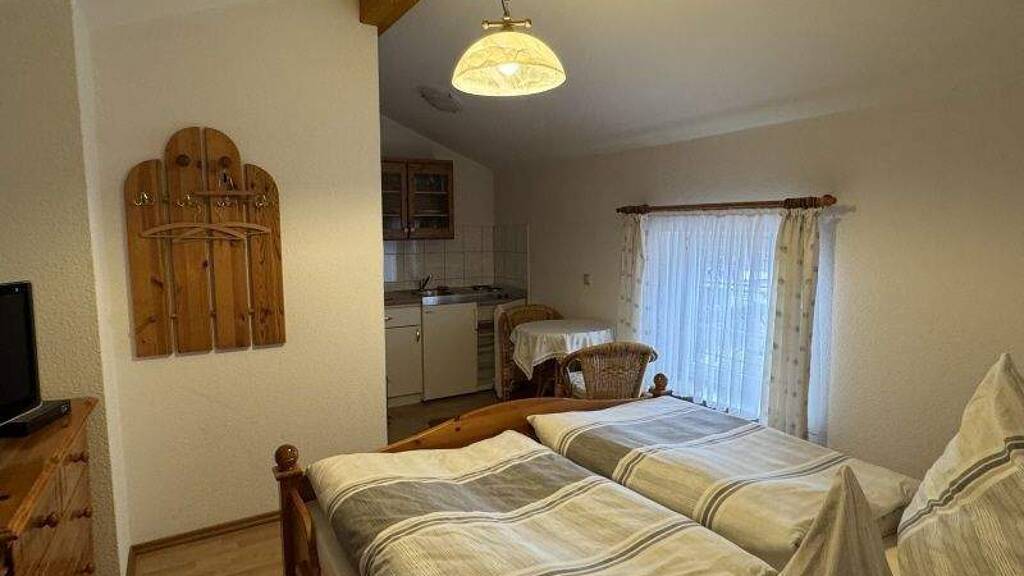 . Eine großzügigere Ferienwohnung (ca. 24 m²) im Erdgeschoss mit Wohn- und Schlafzimmer, Küche und Bad.