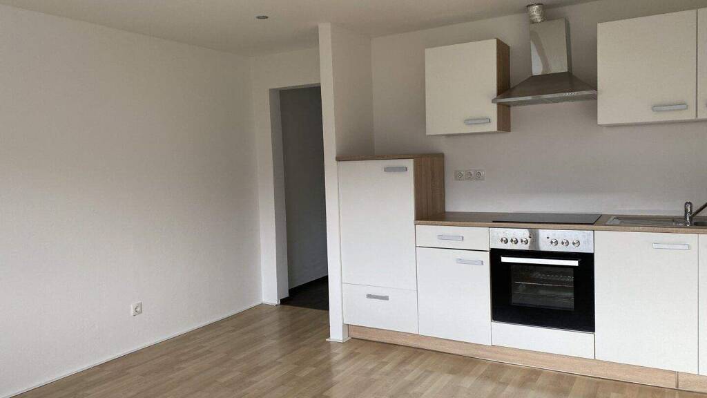 Wohnraum mit integrierter KomplettkĂĽche, 2 Schlafzimmer, Eingangsbereich, sowie Bad mit Wanne und WC. Die optimale 2er WG!!